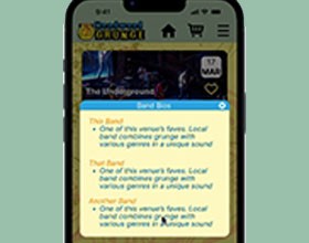My 'random generated' assigned venue app was for 'Deadwood Grunge'. As the final it was to demonstrate an entire app flow from login to home, to video cards and ticket purchase.