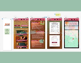 For my 'Julie Wallets' site, I first designed layout then plotted flow including home page, slide on menu, features page, checkout and delivery notification.
