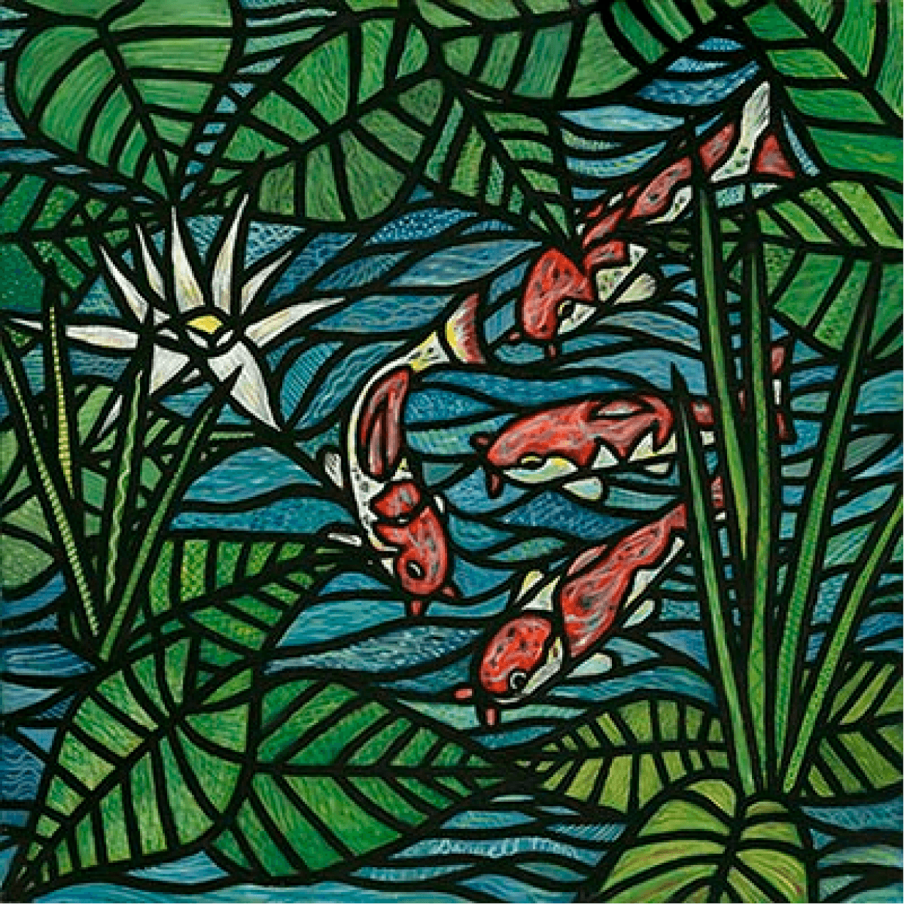 Love fish and I thought orange and white koi would definitely lend themselves to my stained glass style