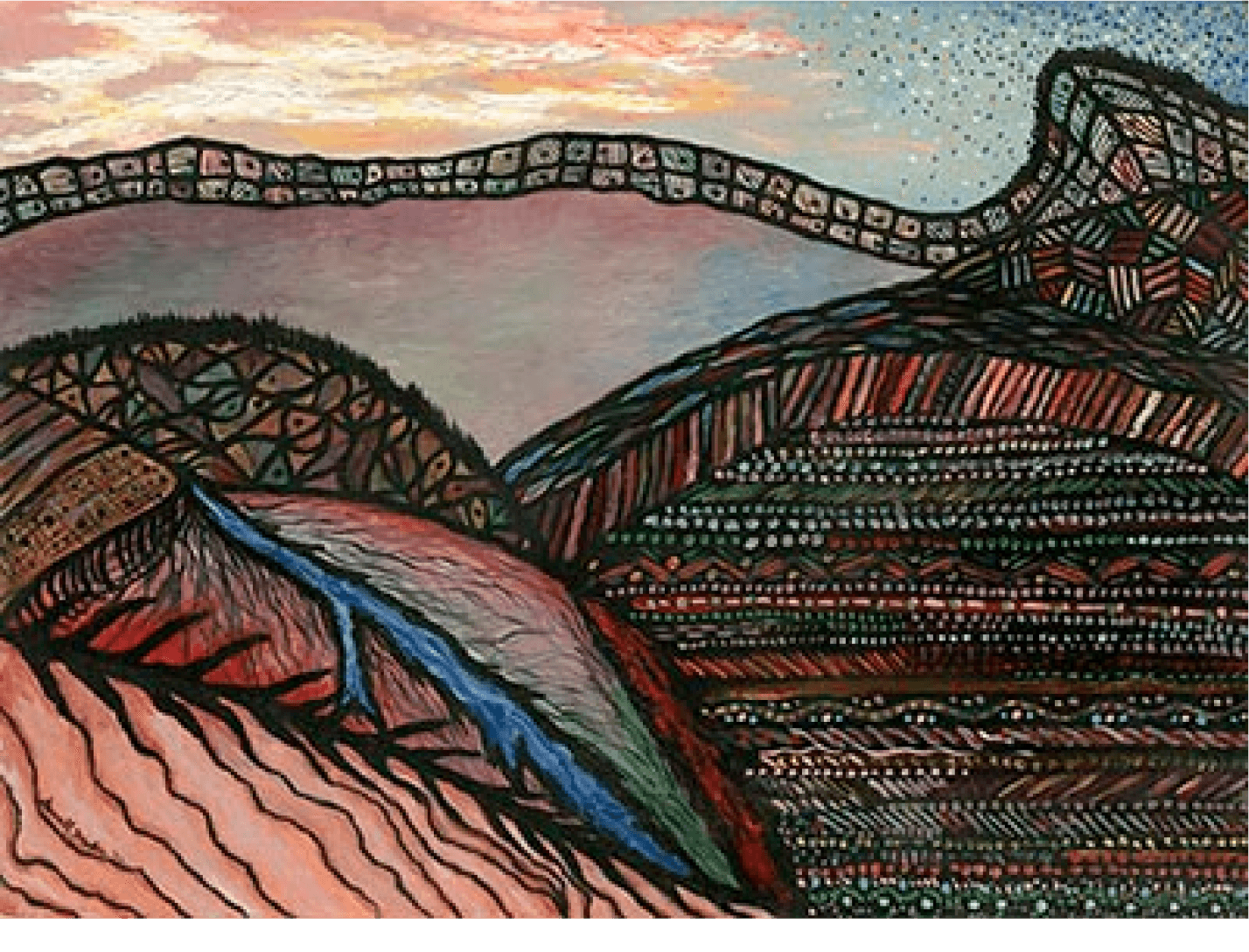 This painting is based on a mixed media painting I did in college. Worked with some geologists in high school and college, and growing up in the Black Hills and near the Badlands you can’t help but notice the unique geography and be influenced by the vast landscapes. One of my least successful titles: land is sold with titles and summarized in abstracts. I needed to title this abstract landscape... almost works.